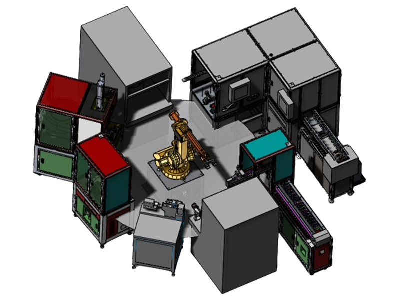 ● 一台安川六轴GP7给滴漆炉上料,左右各一组上下料输送带,保证效率,设备不受转子外径的限制,换型方便。